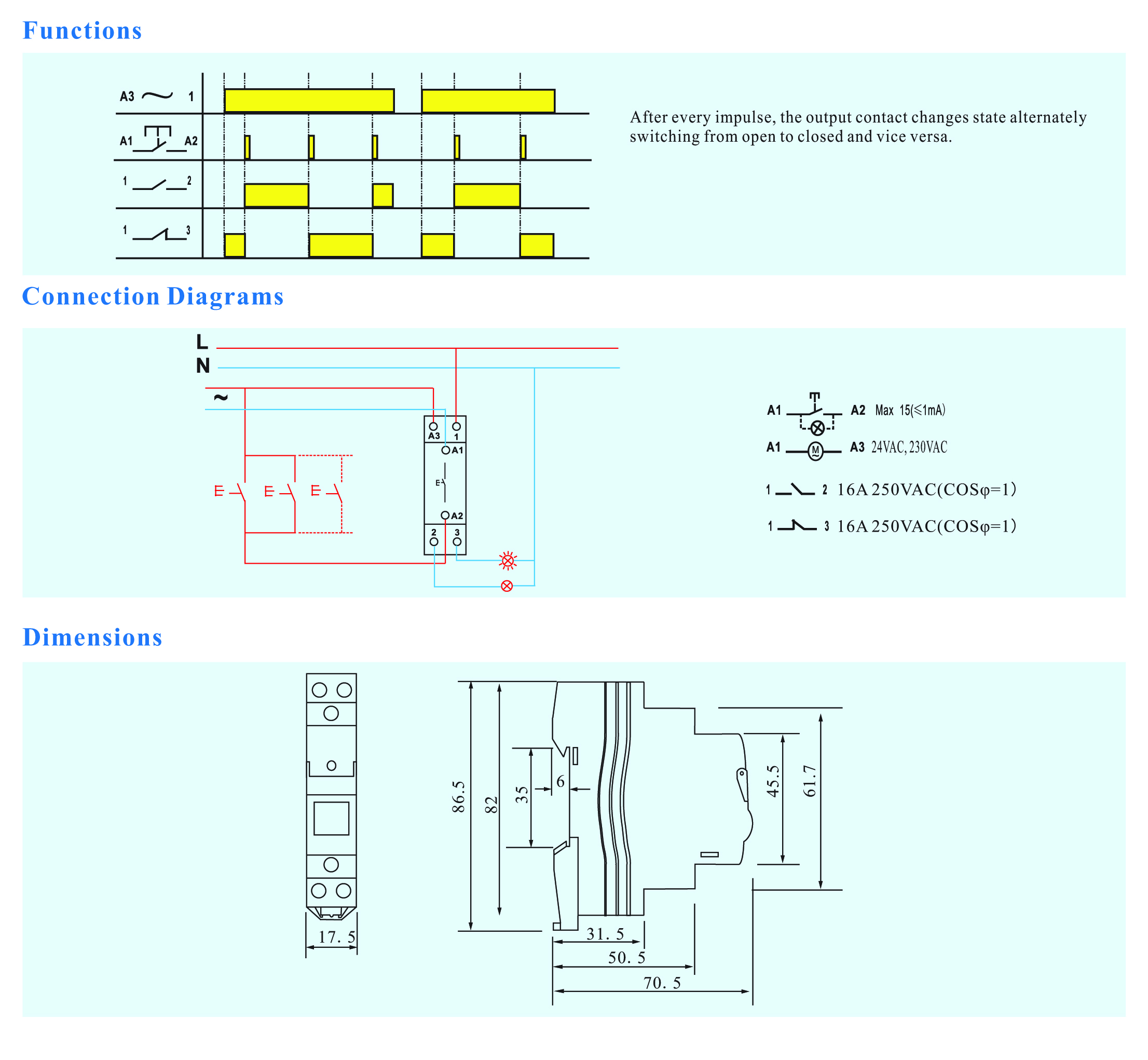 Rated Current: 16A 250V AC (COS φ=1)