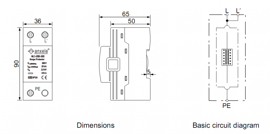 Lightning impulse current (10/350μs) [L, N-PE] (Iimp) | 25 kA |