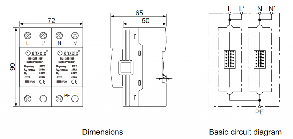 Lightning impulse current (10/350μs) [L, N-PE] (Iimp) | 25 kA |