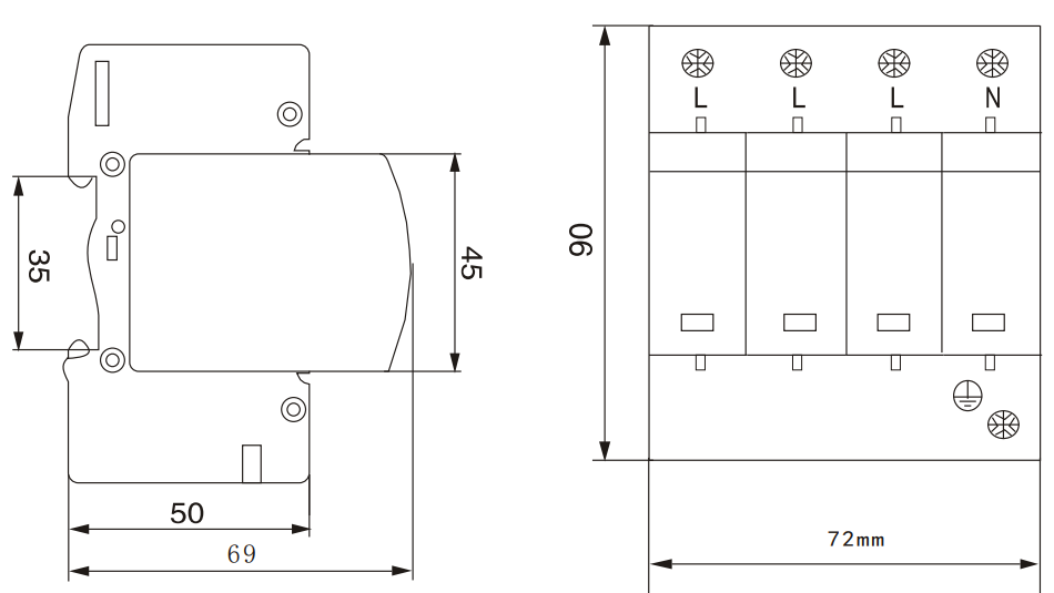 - A sensitive heat tripping/deterioration device is placed inside the protection module,when the protection device gets damaged because of overload, the inbuilt tripper shall act in time to cut off the connection with the power supply