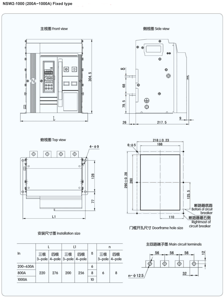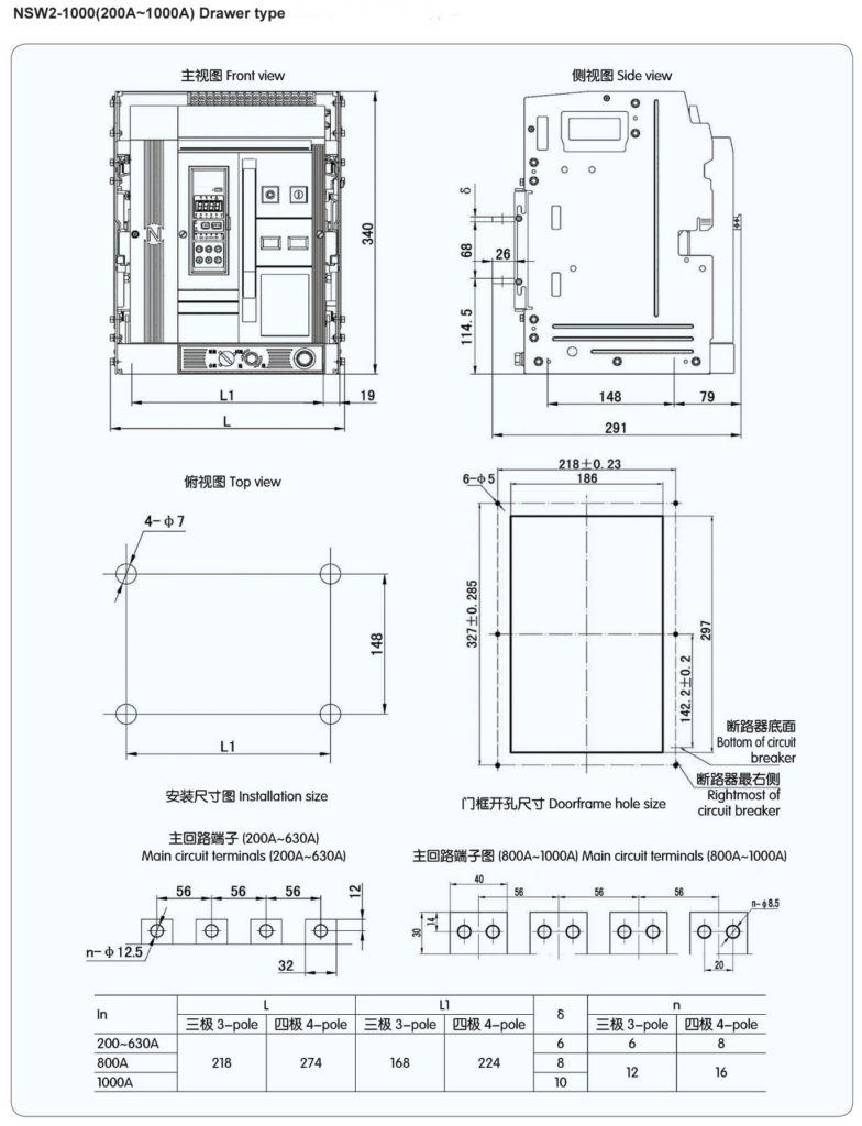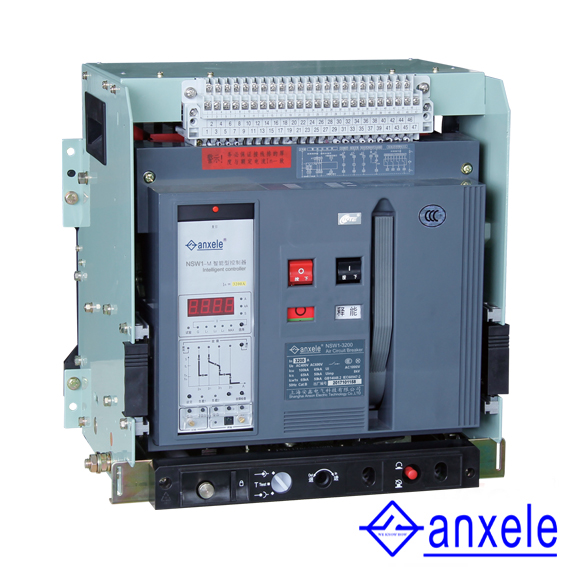 NSW2 series” anxele”brand Air circuit breaker is applicable for distribution network of AC/DC 50/60Hz,rated voltage of 400V and 690V, and rated current of 200A~ 8000A,to distribute electric energy protection circuit and prevent power equipments from harm of overload, under-voltage, short circuit andsingle-phase earth etc. Provided with intelligent protecting function and precise selective protective, breaker can enhance the dependability of power supply and avoid unwanted power cut.