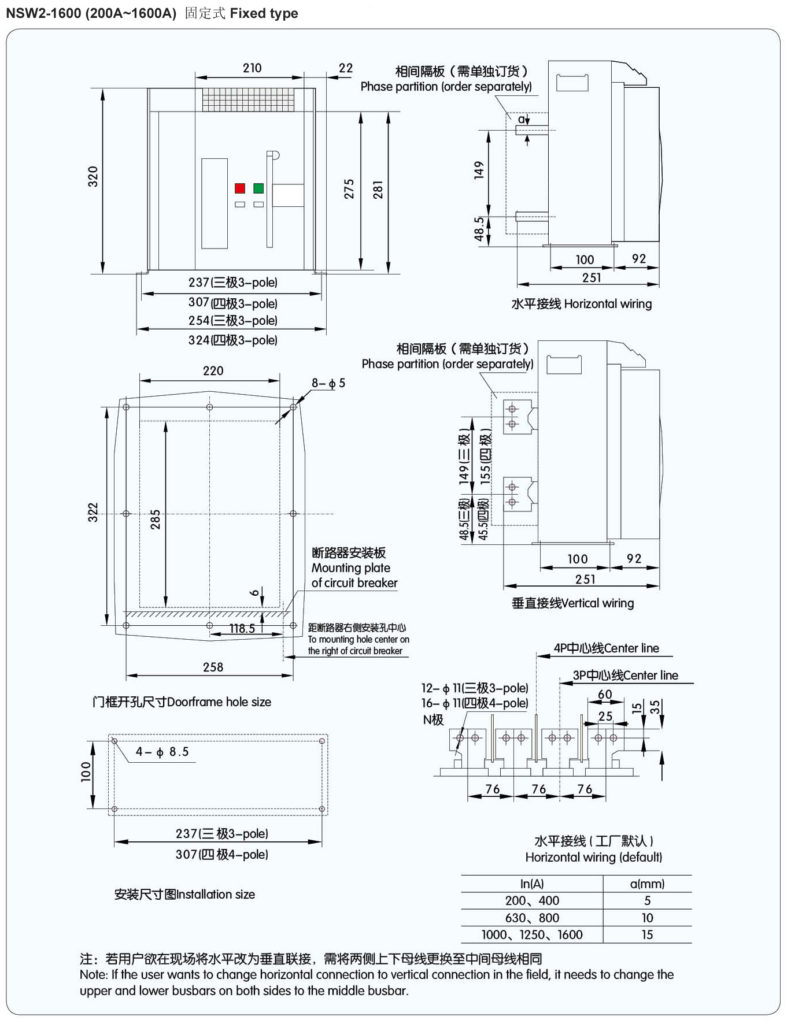 | Note: 2500A or above derating factor is 0.9, including 4000A none-derating among 6300A. | |||||||