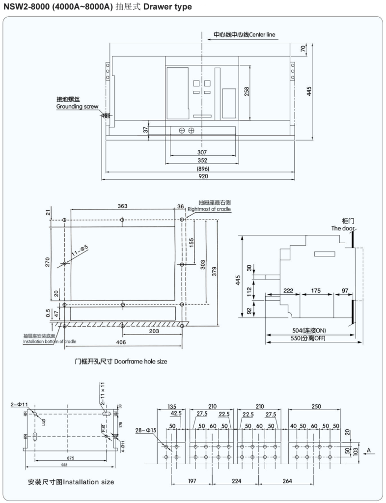 NSW2 series” anxele”brand Air circuit breaker is applicable for distribution network of AC/DC 50/60Hz,rated voltage of 400V and 690V, and rated current of 200A~ 8000A,to distribute electric energy protection circuit and prevent power equipments from harm of overload, under-voltage, short circuit andsingle-phase earth etc. Provided with intelligent protecting function and precise selective protective, breaker can enhance the dependability of power supply and avoid unwanted power cut.